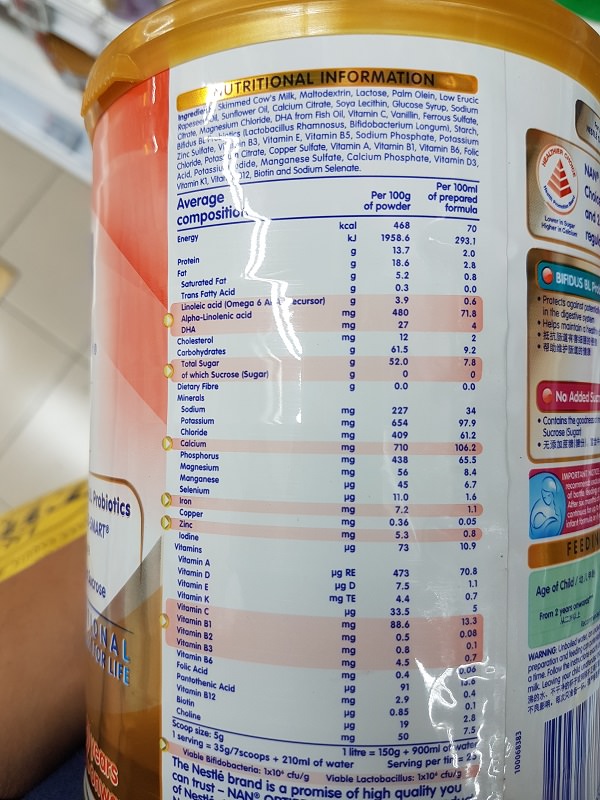 The levels of nutrients and minerals differ slightly but the most glaring difference (or at least what I deem most important) is the difference in calcium levels. It seems that Malaysia NAN 3 lacks in calcium (550mg per 100g of powder). Singapore NAN 3 and NAN 4 is at 620mg and 710mg respectively. I guess a 2-3 year old would be getting enough calcium and nutrients from other food sources so there shouldn’t be too huge a problem.