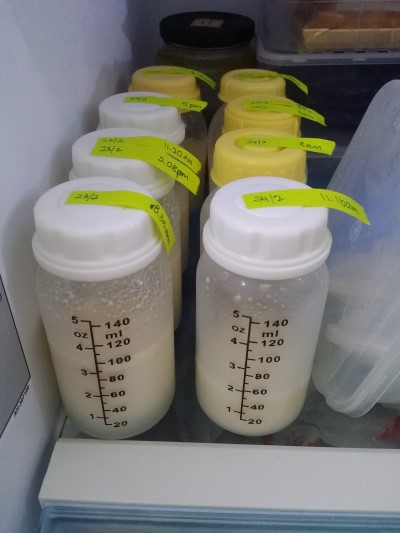 I also learnt another useful tip from a mama. Instead of using a hot towel, fill a baby’s bottle with hot water instead. Roll it on the affected area as you pump. The bottle loses heat less quickly. Wrap it in a towel before rolling it on your boob. You don’t want to scald yourself!