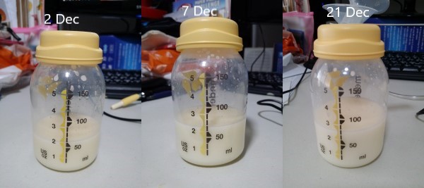 Pumping three hourly continued till Emilee was six months old. I was afraid to drop any pumps because I wasn’t producing a whole lot of milk. I listened in envy as other mums spoke of how they produced a litre of milk or more a day. Here I was, with a maximum production of 700ml combined from both boobs a day.